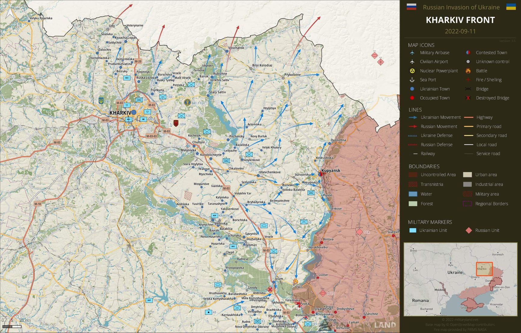 Части и соединения армии России, которые оставили Изюм, отошли на позиции вдоль левого берега реки Оскол и Оскольского водохранилища. До последнего сохранялся российский контроль над Купянском. Была проведена частичная эвакуация мирных жителей. <…>