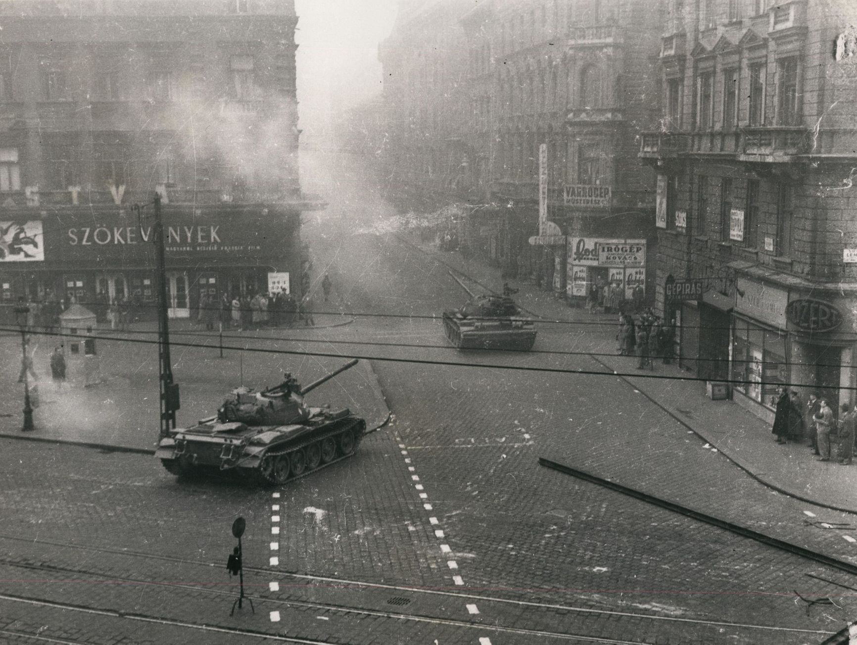 <…> На третий день нам удалось выбраться на улицу. Я видел, как маленькие дети стояли у танков и проклинали их экипажи за то, что те натворили. «Вы действительно верите, — спрашивала одна маленькая девочка по-русски (венгерские дети были обязаны учить русский в школе), — что пришли освободить нас от фашистов?» [Коммунистическая пропаганда представляла борьбу венгров за независимость как фашистский мятеж, подготовленный и финансируемый империалистами.]