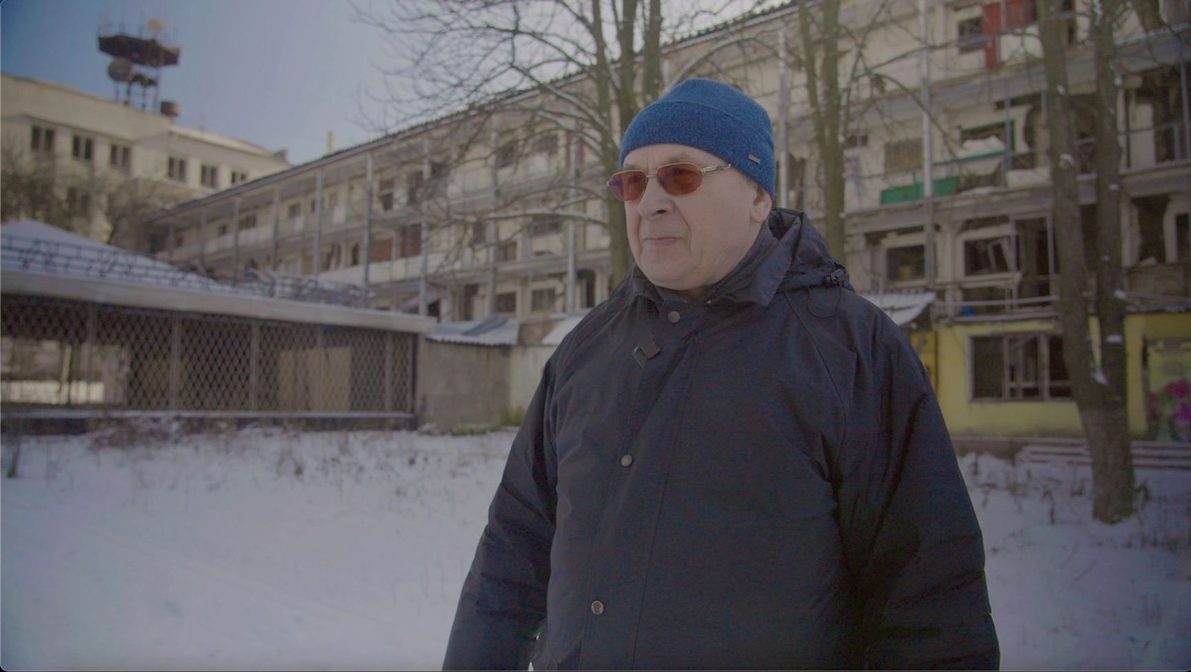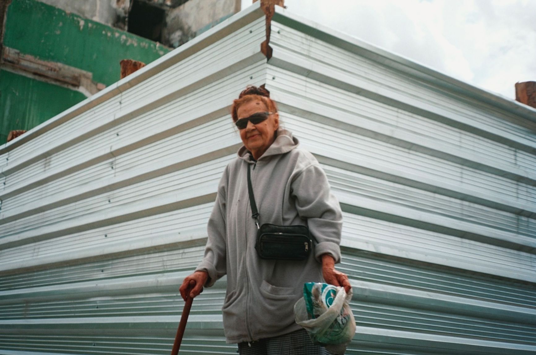 Where could I go? I have no one. All I have left is a medal for long and faithful service. My son died of COVID five years ago. There’s no one even to bury me. I’ve lived in this apartment building for 47 years. Even now, with half of it destroyed, I stay. I look after the cats.