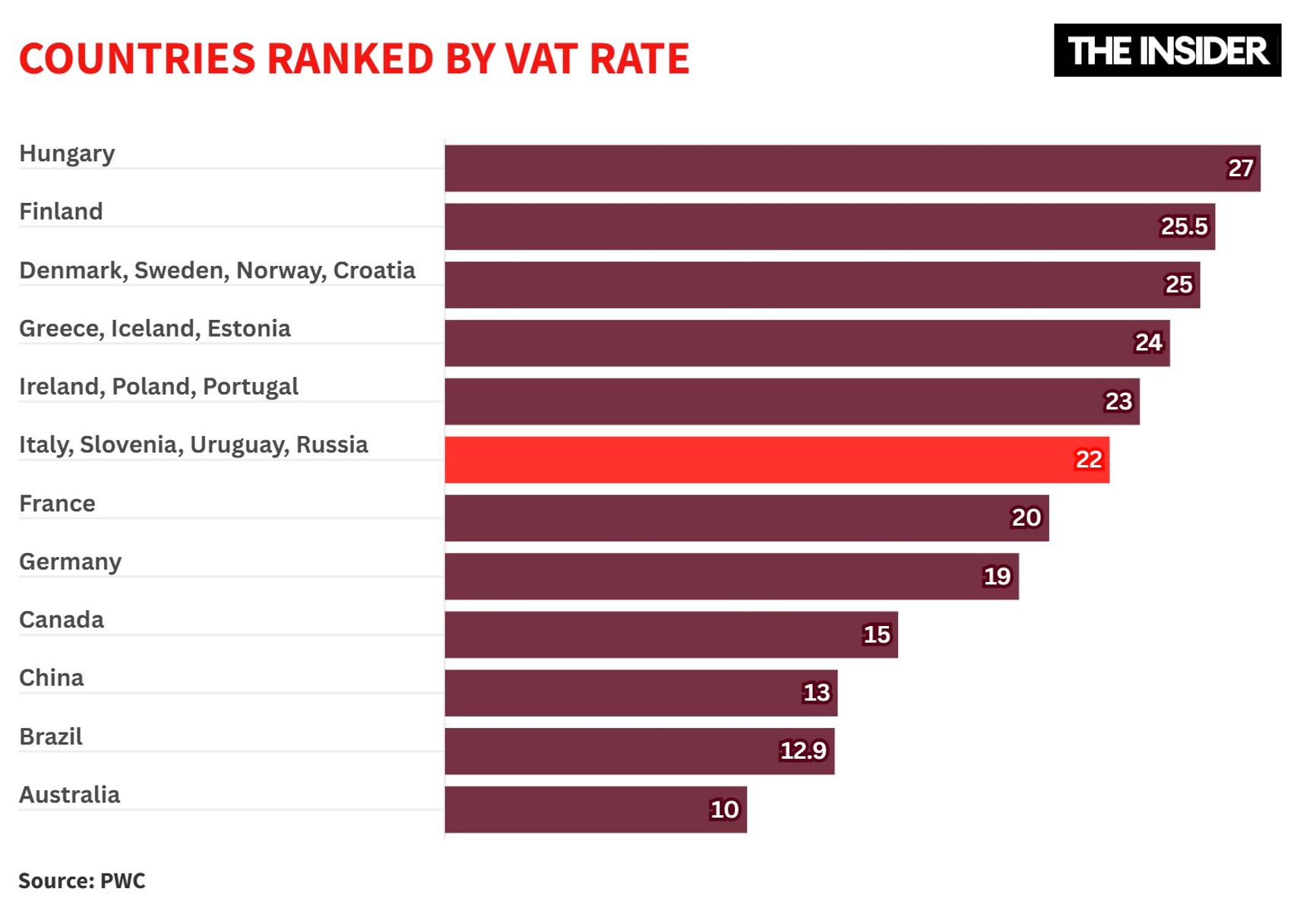 Russia's new 22% VAT rate will be the highest since the Gaidar government in 1992