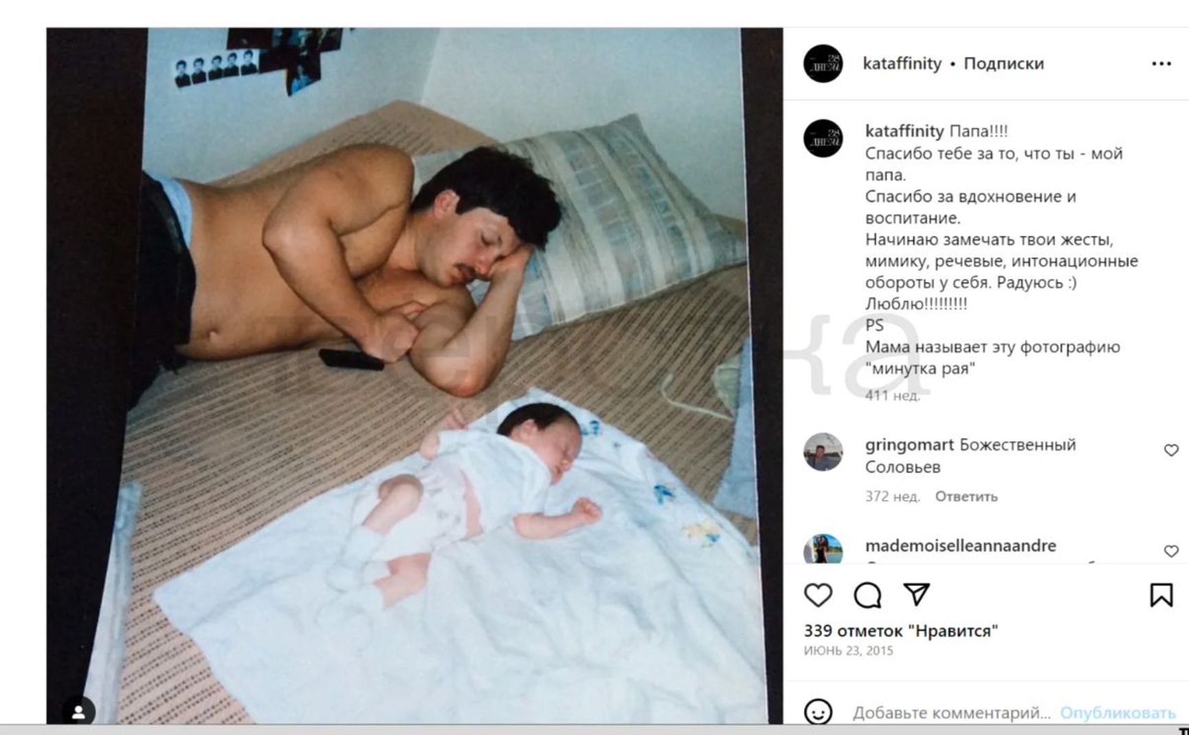 According to the publication, the woman does not hide her kinship with Vladimir Solovyov. She has dedicated several posts to him on Instagram, and posted joint photos with him. A caption under one of the posts read: “Thank you for being my dad.”