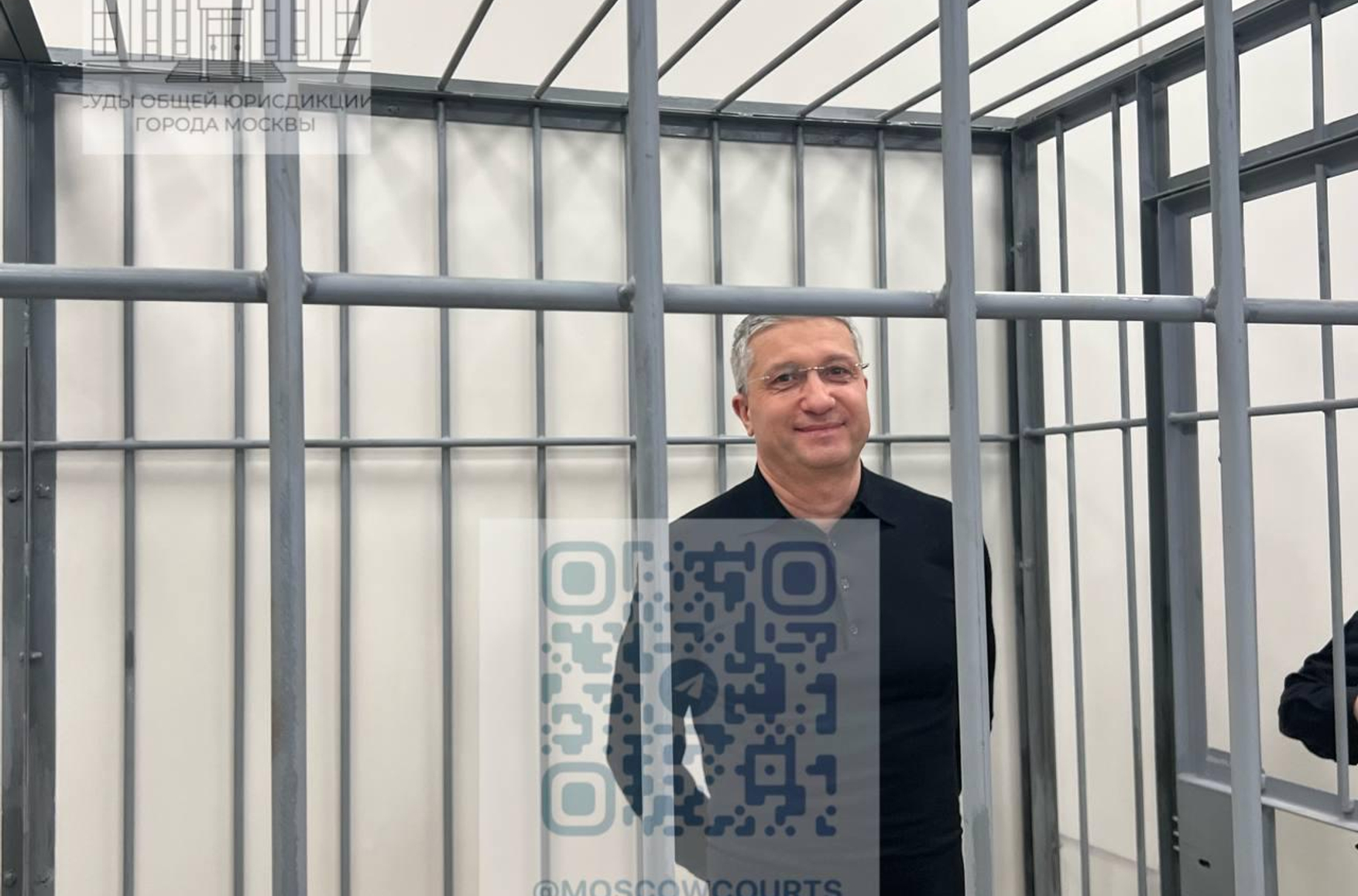 Russia's former Deputy Defense Minister Timur Ivanov, a longtime associate of current Security Council head Sergei Shoigu, awaits sentencing behind bars in a Moscow court. Photo: Courts of general jurisdiction of the city of Moscow (@moscowcourts / Telegram)