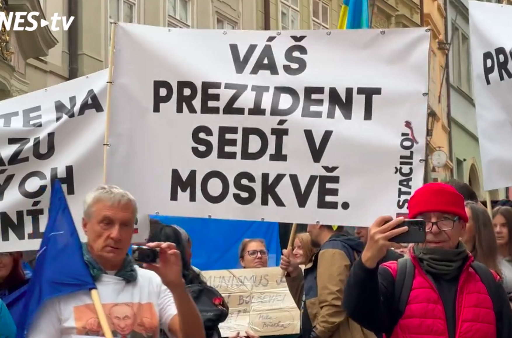The rally was organized by the Svatopluk association, led by former Czech ambassador to France Petr Drulák. Drulák is now considered one of the ideologues behind the Stačilo! party list, formed mainly by Czech Communists and joined by politicians from the Social Democratic Party aligned with former president Miloš Zeman, who is known for his proposal to recognize Crimea as Russian.