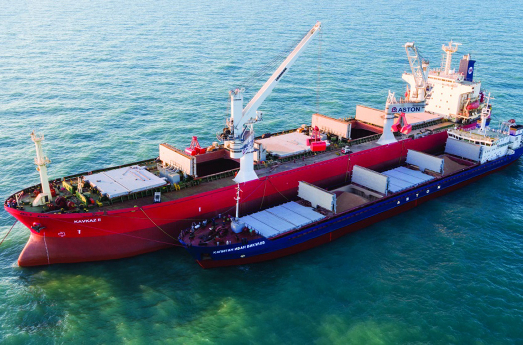 Offshore ship-to-ship cargo transfer from the bulk carrier Kavkaz II to another vessel. Photo: aston.ru