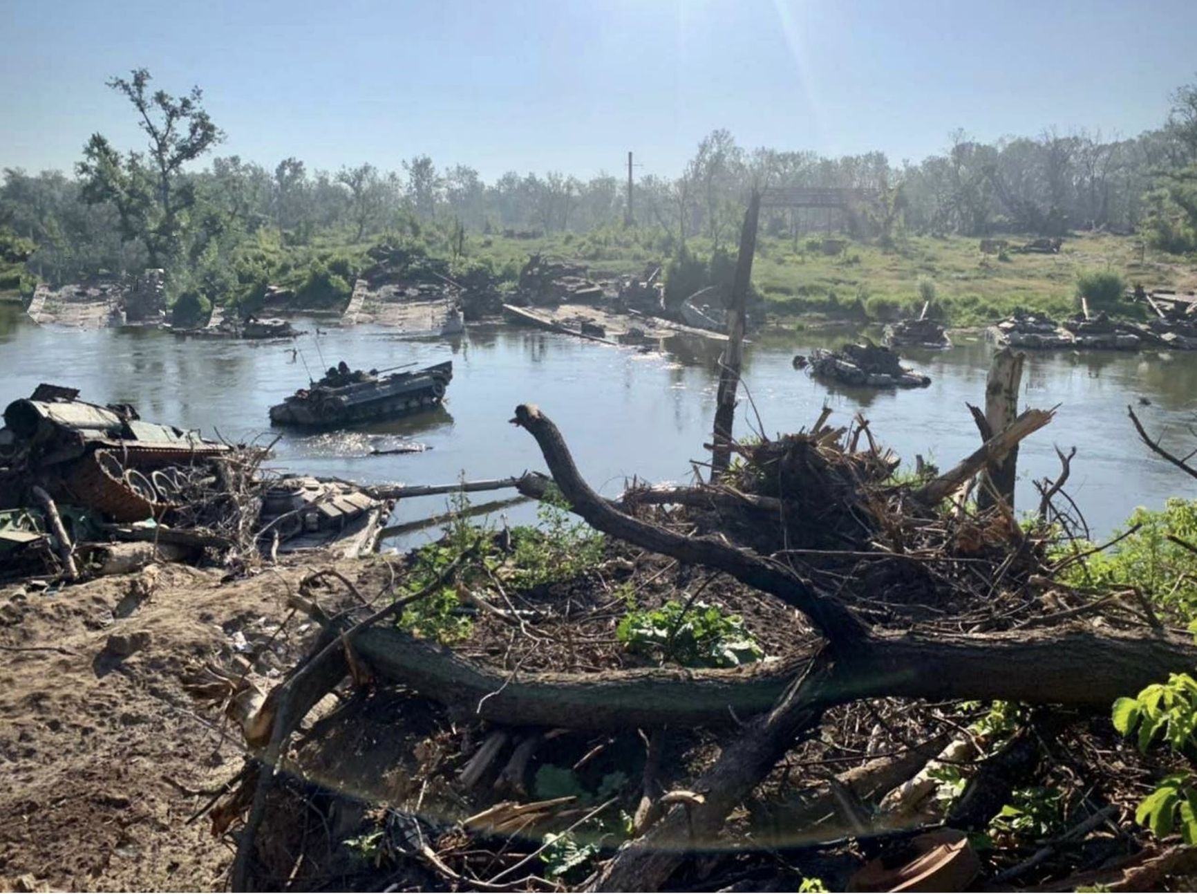 The helplessness of Russian tanks against anti-tank weapons (Javelin, NLAW) is highlighted by attempts to artificially armor the vehicles with logs, sandbags or stones, and metal grates. Wooden protection has also been seen on other armored equipment and trucks, and dynamic protection designed for tanks has been placed on APCs and armored vehicles.