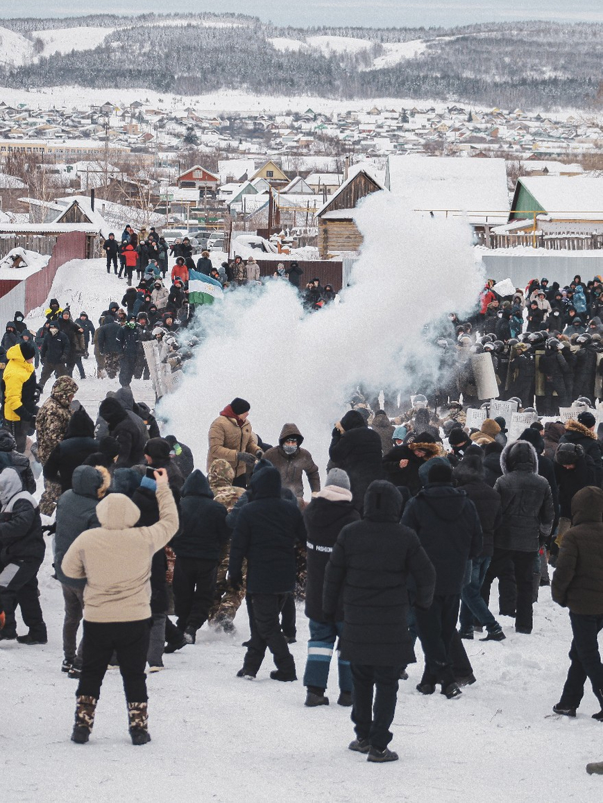 Authorities shut down network coverage and mobile internet in Baymak. On Telegram, they blocked several channels: that of the online publication RusNews, which was broadcasting from the square outside the courthouse; the Kushtau Online channel set up by activists defending the chalk hill; and several other opposition channels in Bashkortostan. Pro-government pages on the social network VKontakte and Telegram channels warned that police reinforcements were on their way from Sibai to Baymak.