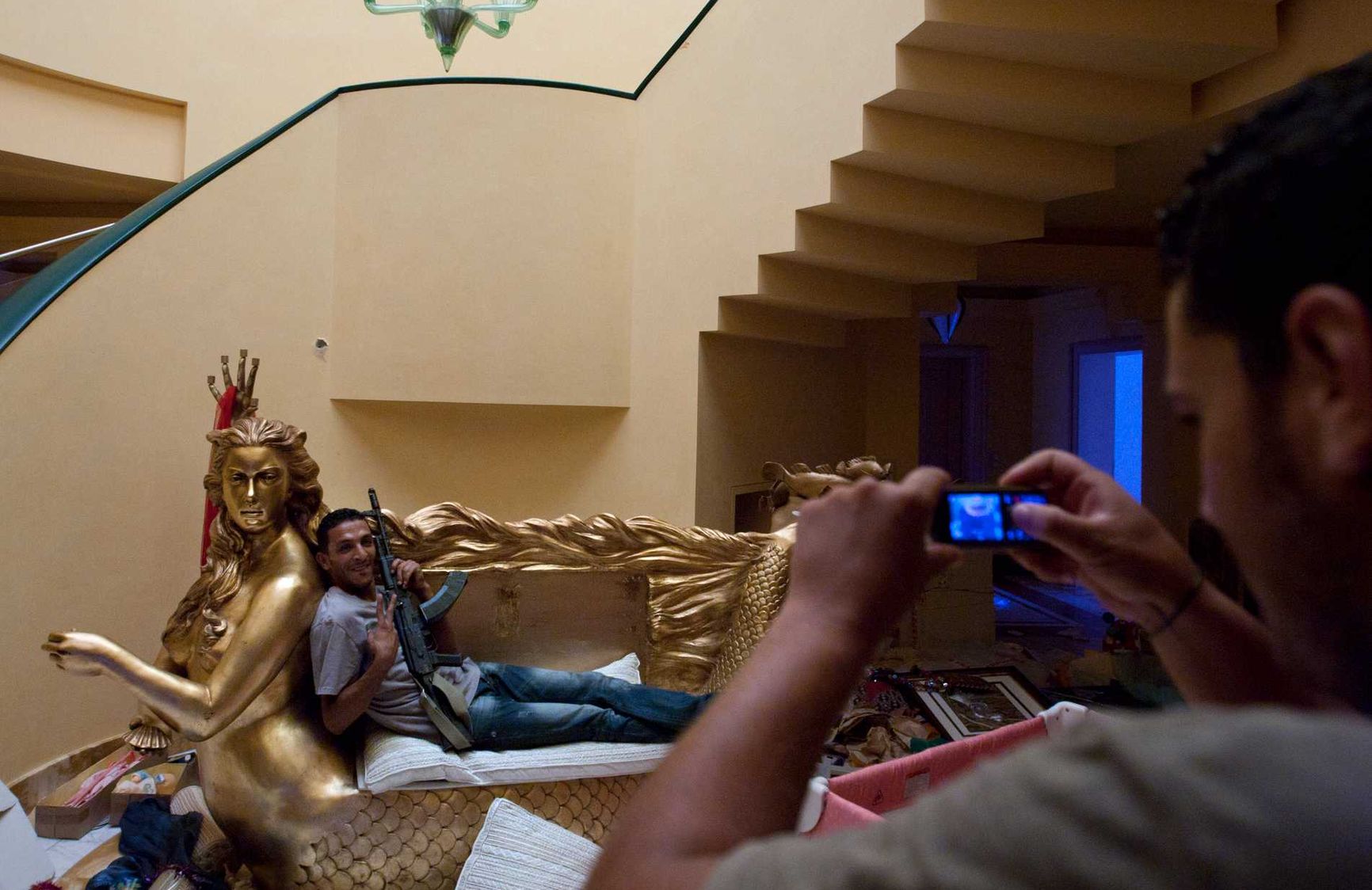 В индексе восприятия коррупции у Ливии времен Каддафи было 22 балла (наименьший уровень коррупции – 100, сейчас 1-е место занимает Дания с показателем 88, а Ливия, чей показатель стал еще хуже – 17, занимает 173-е место из 179 стран). Полковник буквально купался в роскоши. У него был золотой диван в форме русалки, золотой автомат АК-47, золотые часы, золотая тележка для игры в гольф, из золота были все столовые приборы и даже мухобойка). Все ливийские активы за рубежом, фактически принадлежавшие Каддафи, оценивались в 2010 году в $152 млрд.