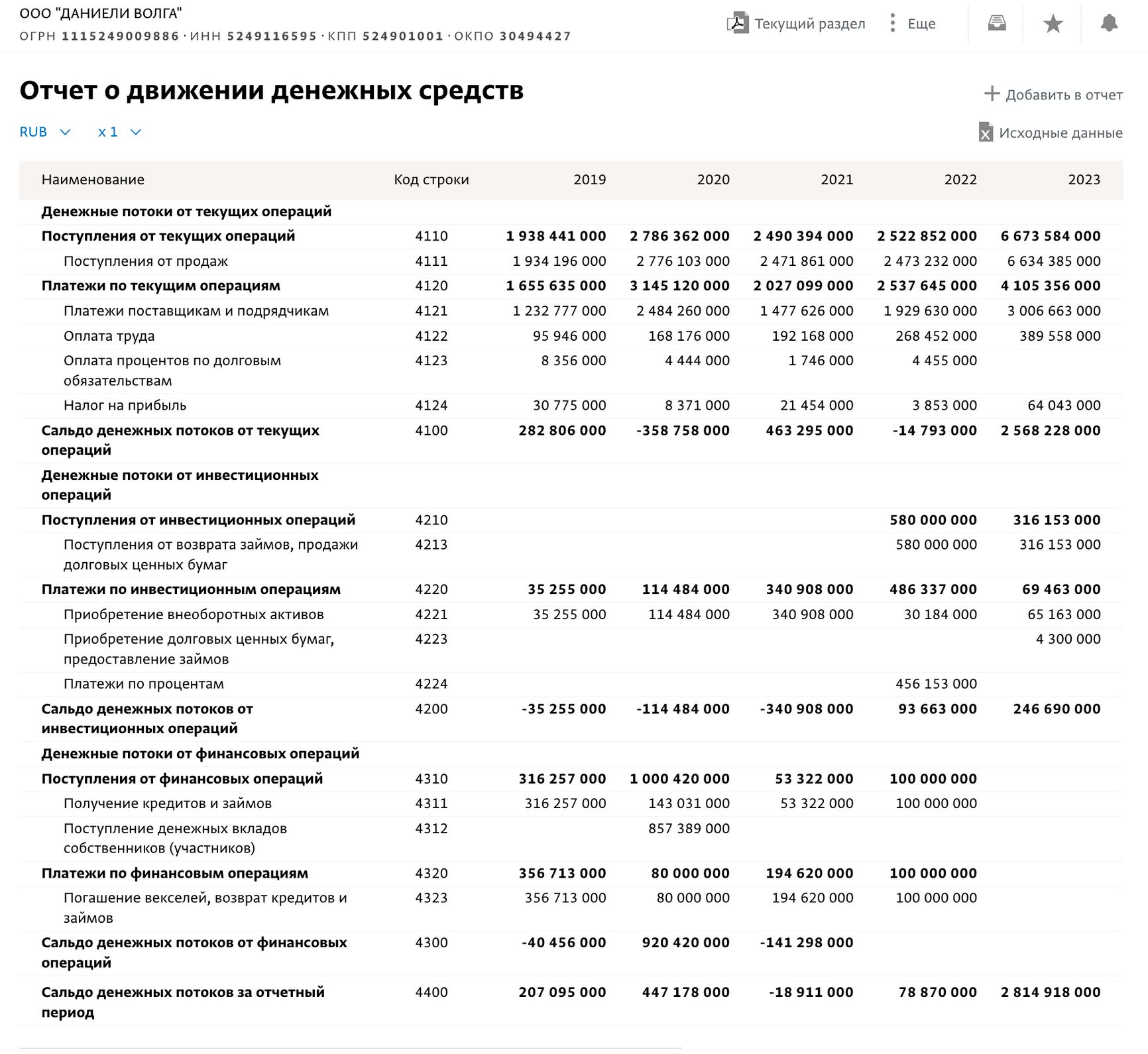 В 2023 году дочерняя компания структуры «Даниели Волга», согласно Спарк-Интерфакс, увеличила выручку в 2,6 раза. А чистое сальдо финансовых потоков вообще выросло в 36 раз — с 78 млн до 2,8 млрд рублей.