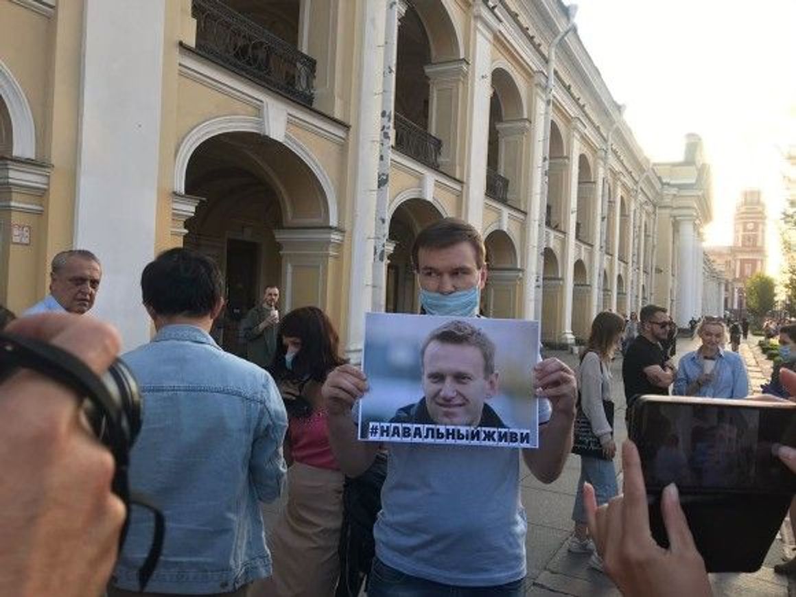 Жители Петербурга также вышли на акцию в поддержку Алексея Навального, госпитализированного с тяжелым отравлением. Активисты собрались у станции метро «Гостиный двор». На акцию вышло более 100 человек.