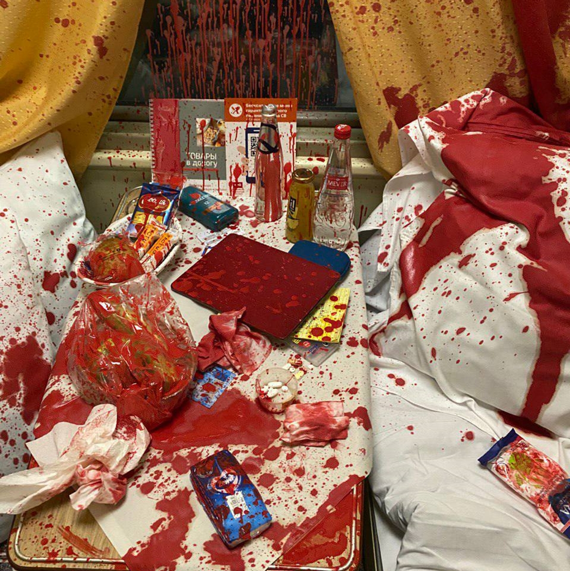 «Облили в купе масляной краской с ацетоном. Глаза ужасно жжет. Поезд Москва-Самара. Масляный запах по всему вагону. Отправление задержано уже на 30 минут. Попробую отмыться. Он выкрикнул: „Муратов, вот тебе за наших пацанов“», — приводит издание слова Муратова.