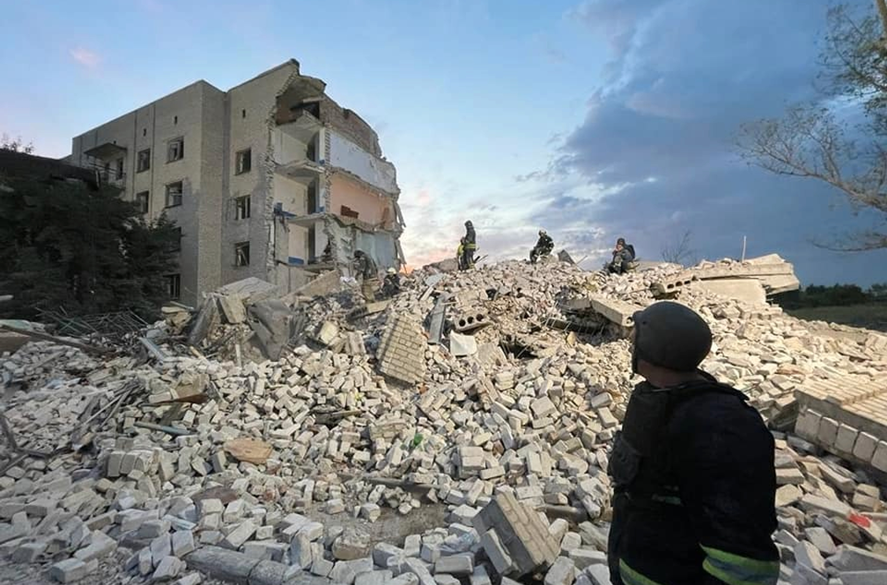 По его словам, в доме полностью разрушены два подъезда. В результате обстрела под завалами оказались как минимум 34 человека. Среди них — 9-летний ребенок. По состоянию на утро 10 июля на поверхность смогли достать 6 погибших и 5 раненых.