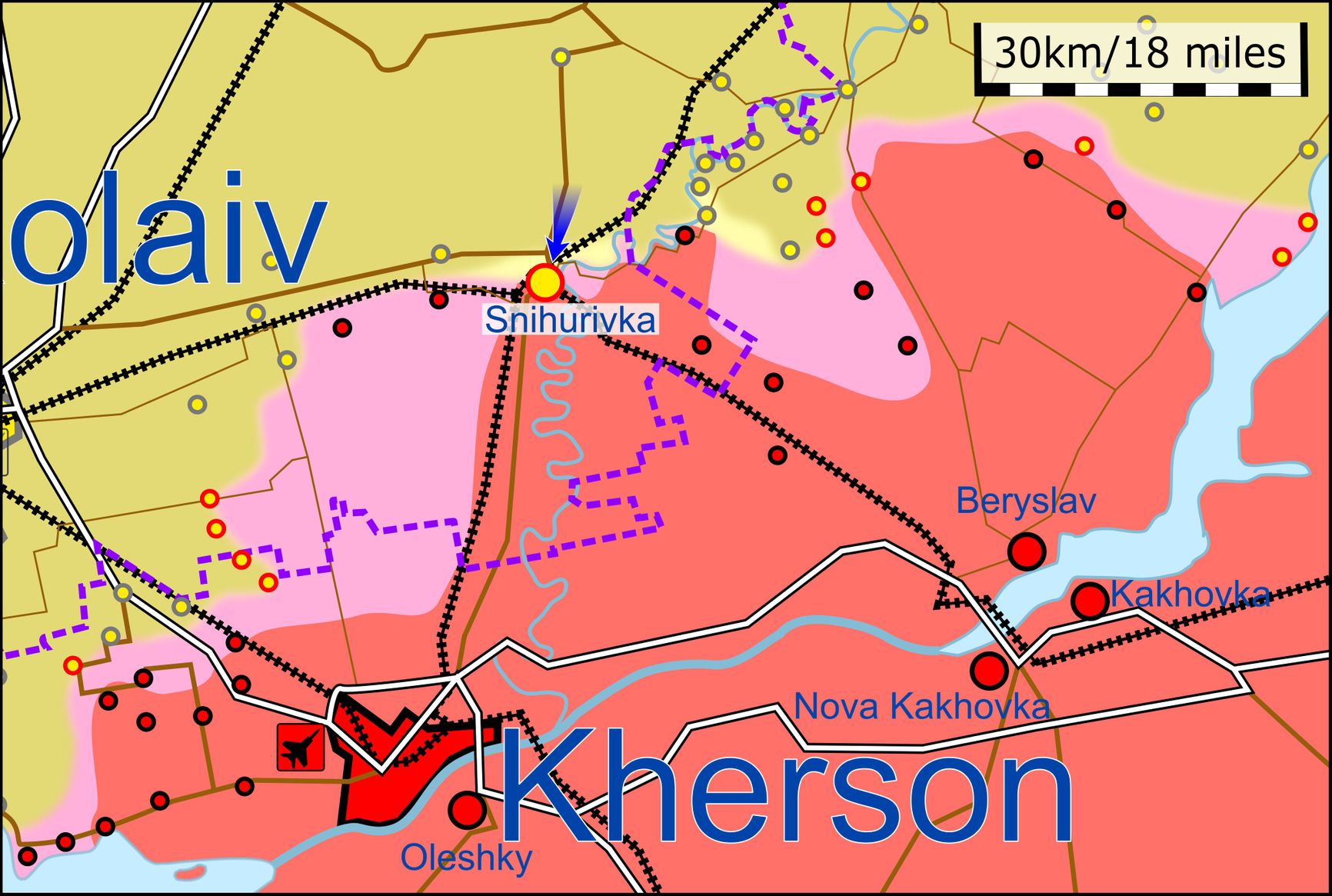 8 ноября замглавы «администрации» Херсона Кирилл Стремоусов сообщил, что на Снигиревском участке фронта идут тяжелые бои, украинским войскам удалось закрепиться в этом районе после переброски резервов из Висунска и Березнеговатого на севере от Снигиревки.