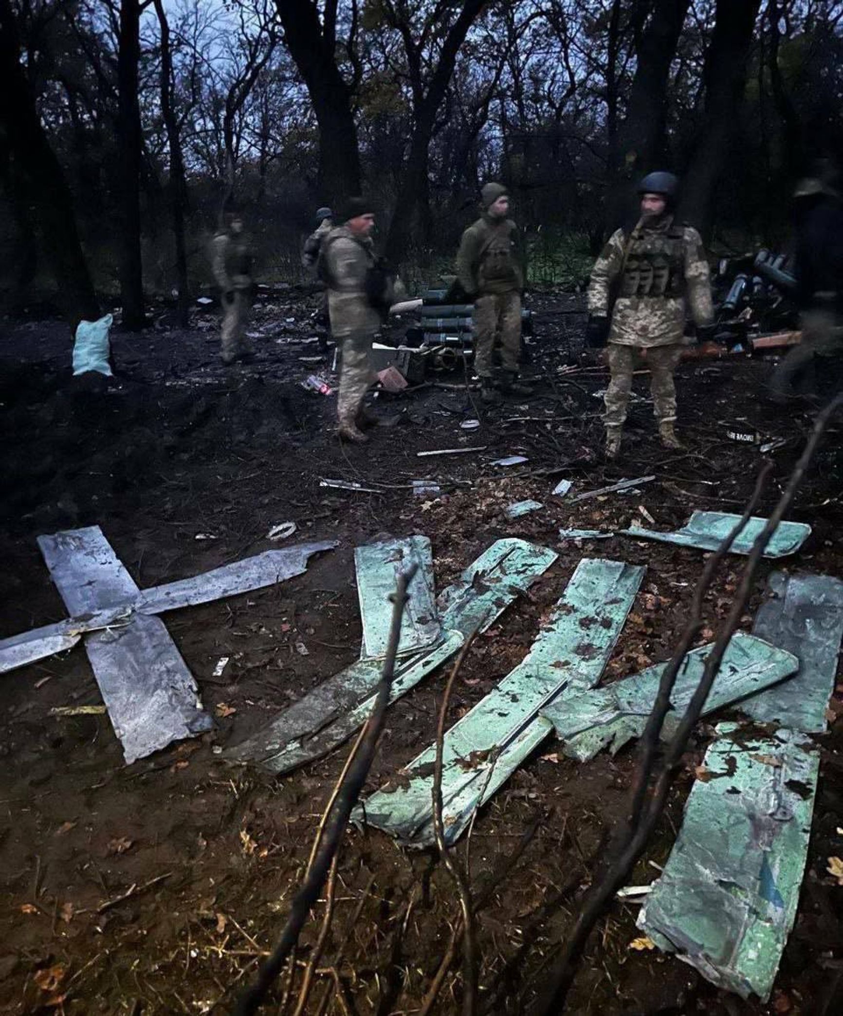 Под Бахмутом военнослужащие ВСУ выложили из крыльев сбитых беспилотников Lancet слово «Х*й».