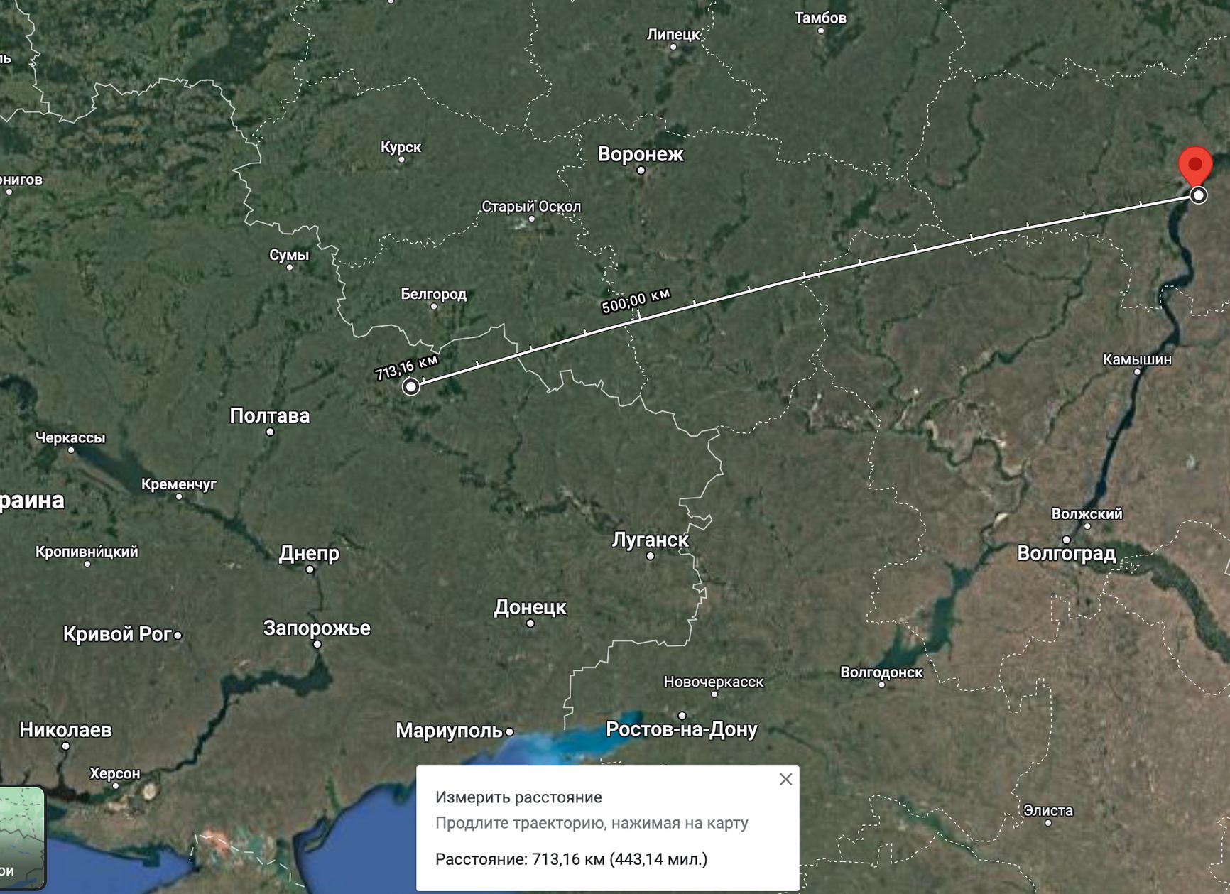 Радиус 1000 км от подконтрольной Украине территории