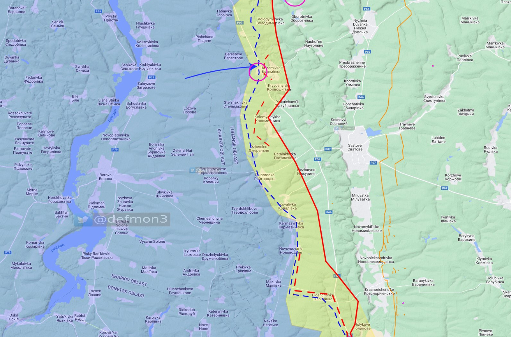 На Сватовском направлении, пишет Минобороны Великобритании, российские военные в последние недели усиленно готовят обширные оборонительные позиций по линии фронта. OSINT-аналитики отмечают, что ВСУ пытаются атаковать по направлению на Софиевку, чтобы перекрыть снабжение Сватово с севера.