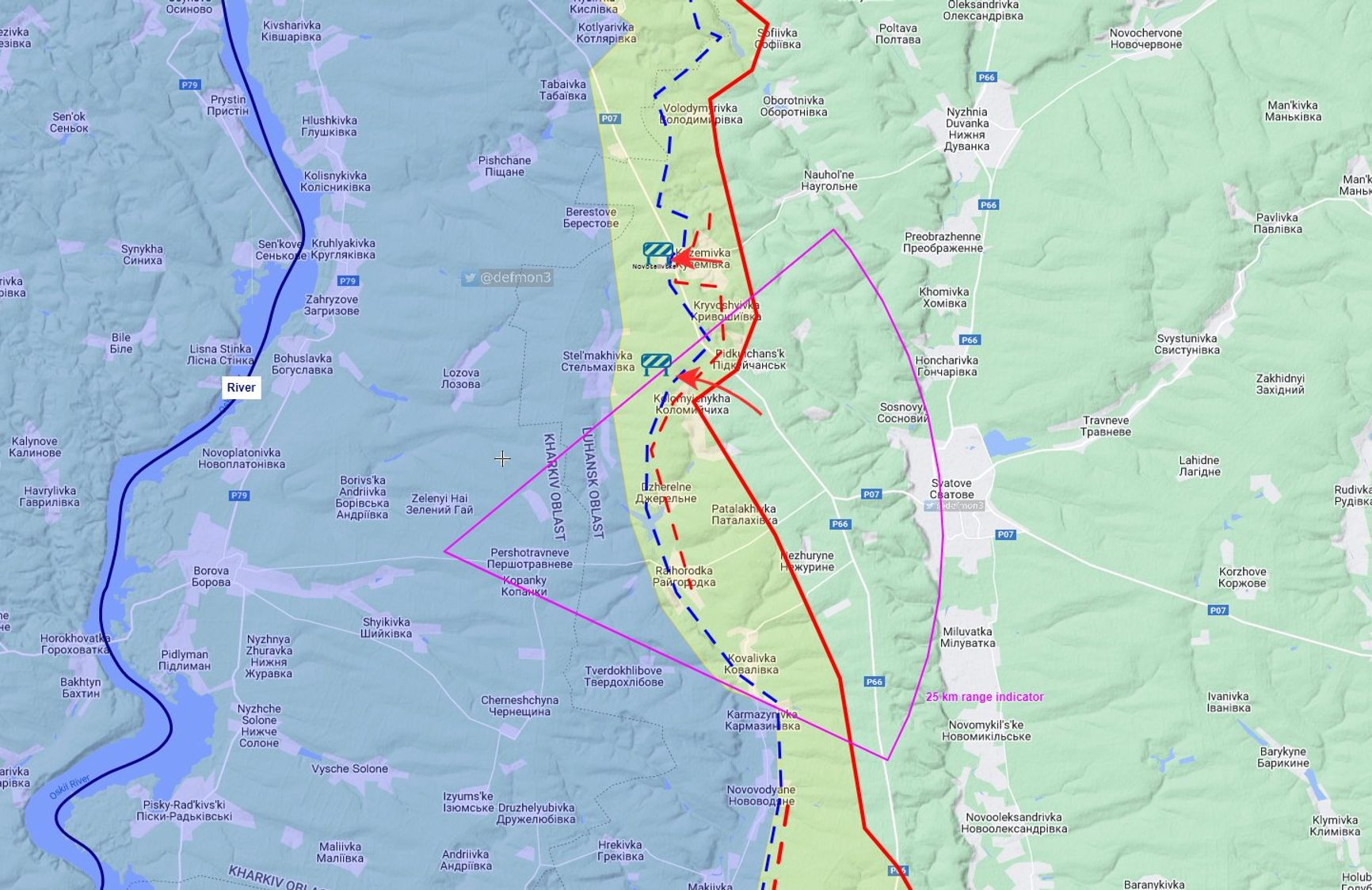 Аналитик Def Mon подчеркивает, что сейчас Сватово попадает в двадцатипятикилометровую зону досягаемости украинской ствольной артиллерии. Это позволяет применять дальнобойные снаряды.