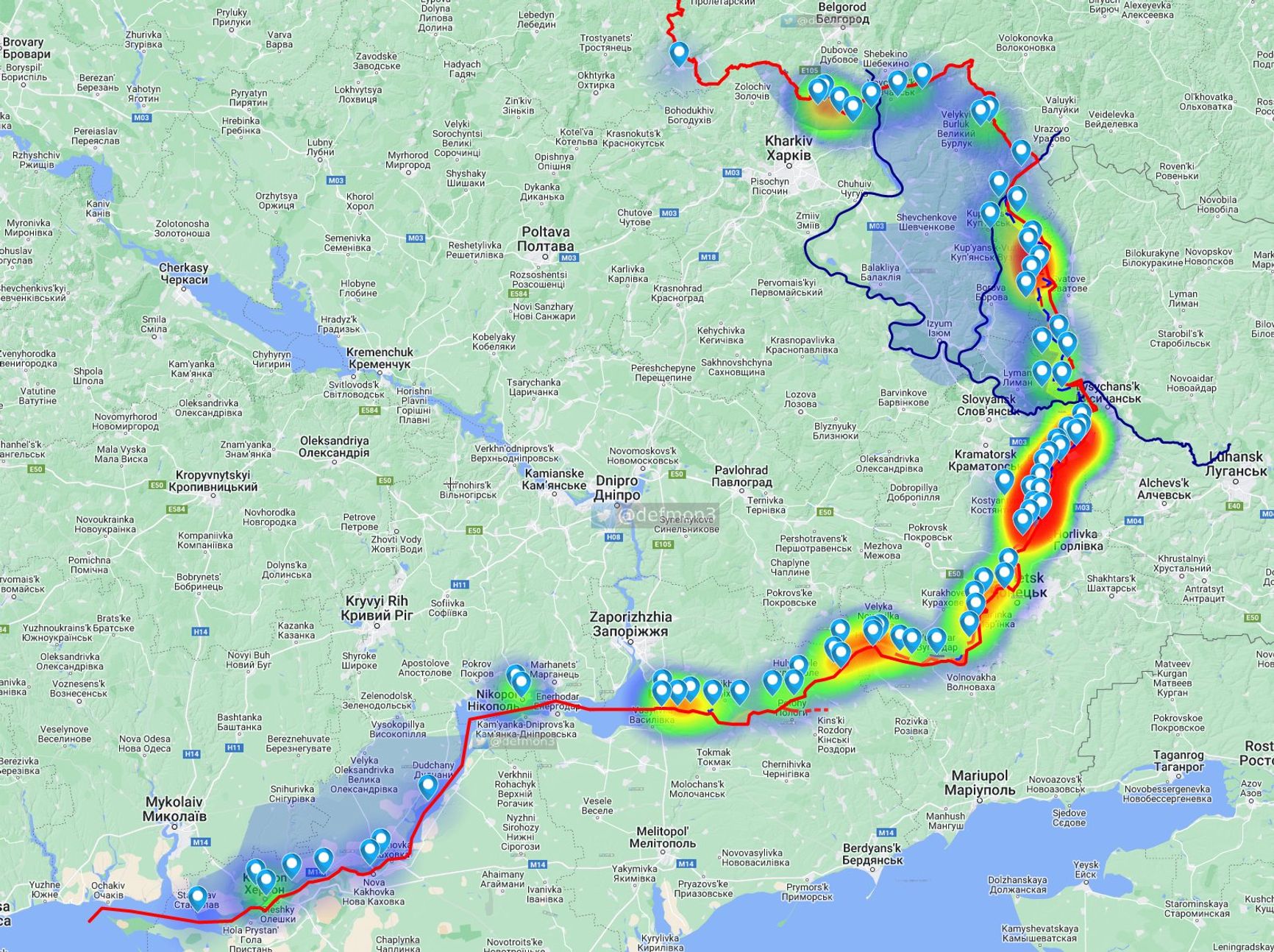 Российские военные пересекли железную дорогу в районе пруда Мойка и снова оказались в селах Андреевка и Курдюмовка. Однако этот успех дорого им обошелся: за последние сутки 690 военных погибли и не менее 1800 были ранены на всех прилегающих направлениях, пишет в Twitter военный корреспондент, бывший военнослужащий «Морских котиков» США Чак Пфаррер, и иллюстрирует ситуацию наглядной картой: