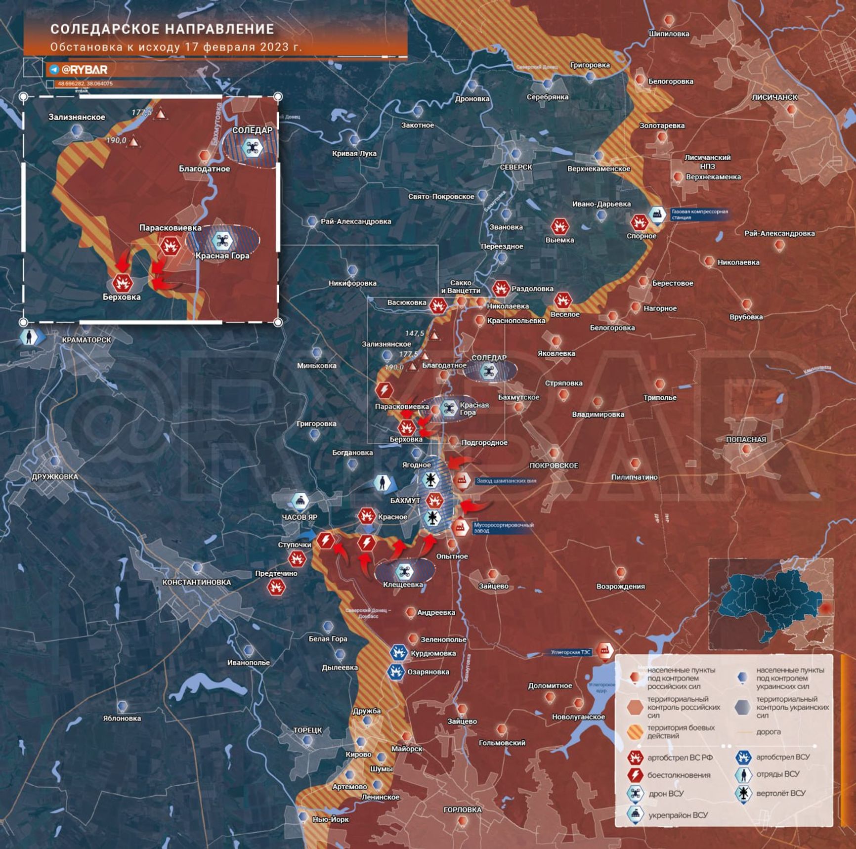 Также на Донецком направлении, как сообщает WarGonzo, при поддержке артиллерии ВС РФ предприняли атаку на Новомихайловку и Первомайское. ВСУ нанесли ракетные удары по Донецку, Минеральному и Енакиеву.