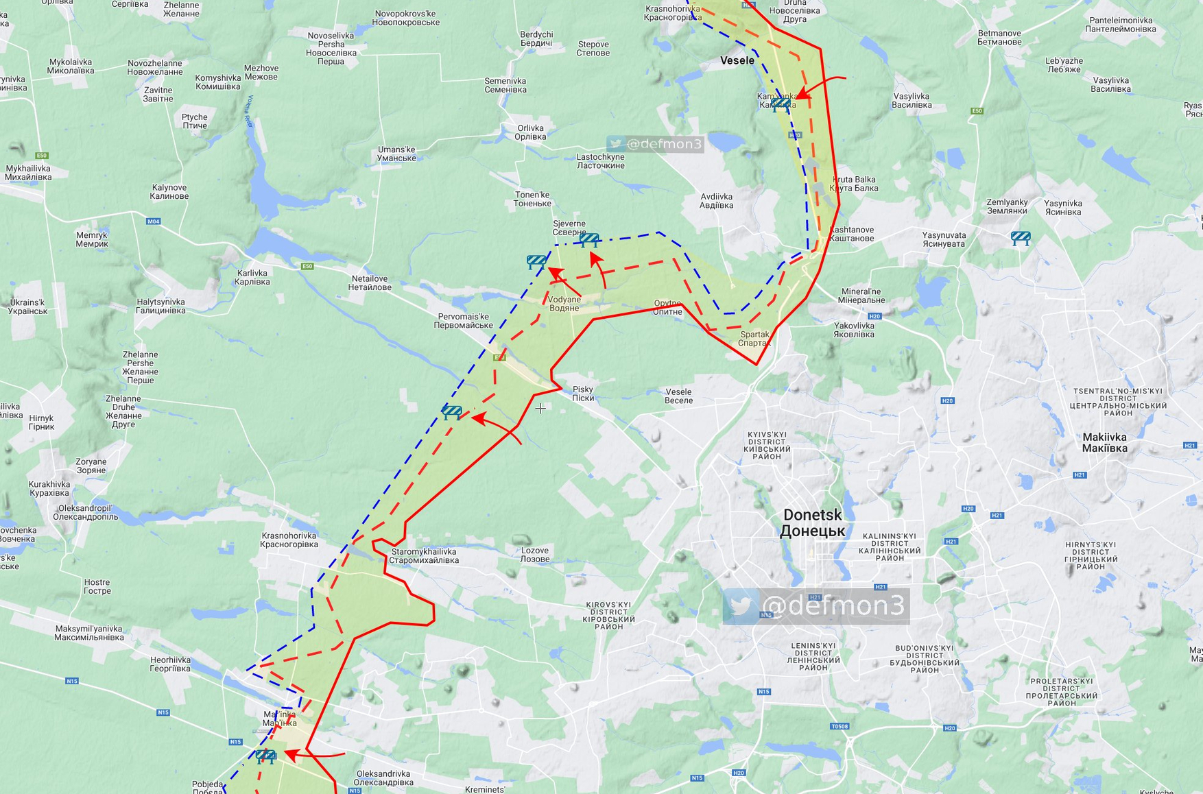 В Бахмуте украинские военные по-прежнему находятся в критическом положении. В южной части города бои идут в районе Ивановского. По данным аналитика Def Mon, ВСУ отбили атаки в районе Орехово-Васильевки, Дубово-Васильевки, Богдановки, Хромово и самого Бахмута. Российские силы, в свою очередь, продвинулись от захваченных Берховки и Ягодного до Хромово. Как подчеркивают аналитики Conflict Intelligence Team, это продвижение закрывает последнюю известную дорогу, соединяющую Бахмут с подконтрольными Украине территориями — путь на Часов Яр. Также CIT утверждают, что Бахмут находится в оперативном окружении. Расстояние между «клешнями» — двумя сторонами незамкнутого круга захвата — составляет всего 5,5 км.
