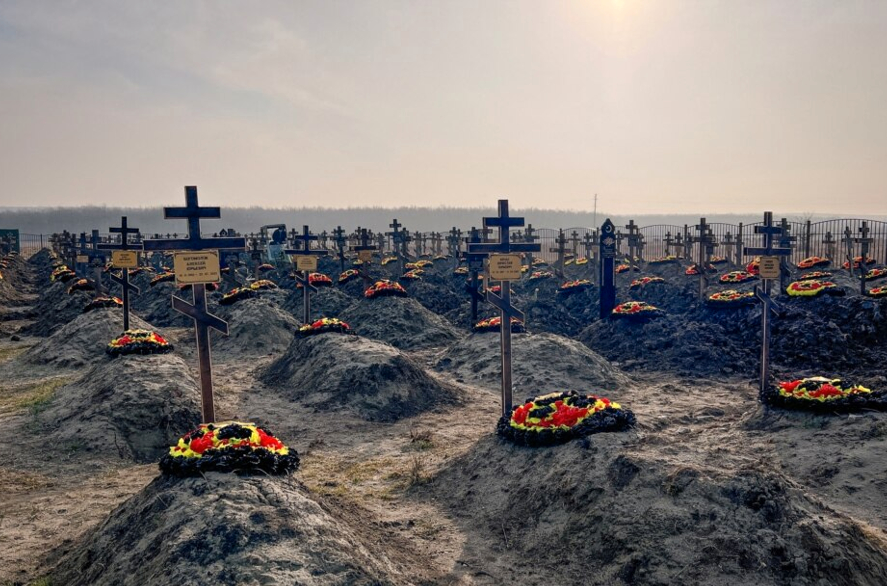 В России и на оккупированных РФ территориях Украины обнаружено уже семь кладбищ, на которых захоронено не менее 995 человек, которые могли принимать участие в боевых действиях в Украине в рядах ЧВК Вагнера. Об этом сообщает Русская служба Би-Би-Си.