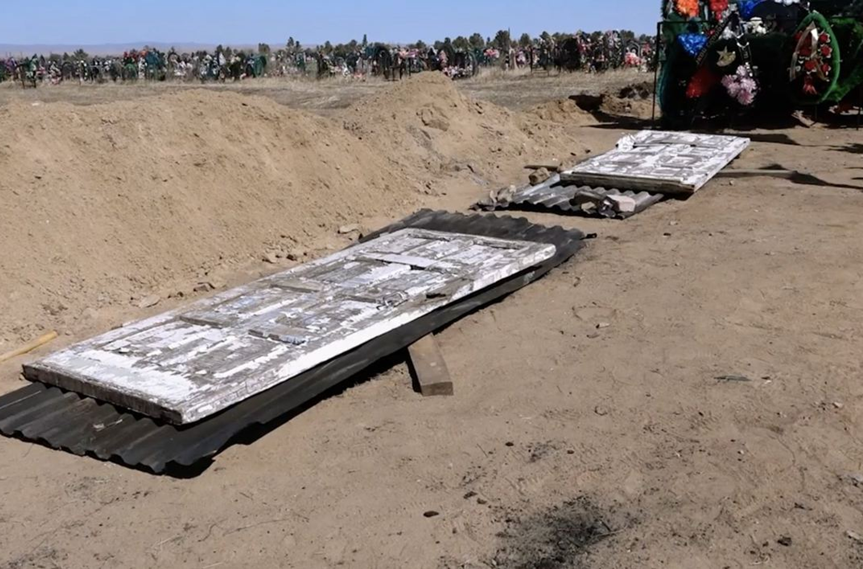 В репортаже сообщается, что вдовы просят облагородить территорию «Аллеи славы» в Борзинском поселении, сделать захоронения в единой стилистике и замостить территорию плиткой. Сейчас к могилам можно пройти по старым деревянным дверям, которые лежат на плитах шифера.