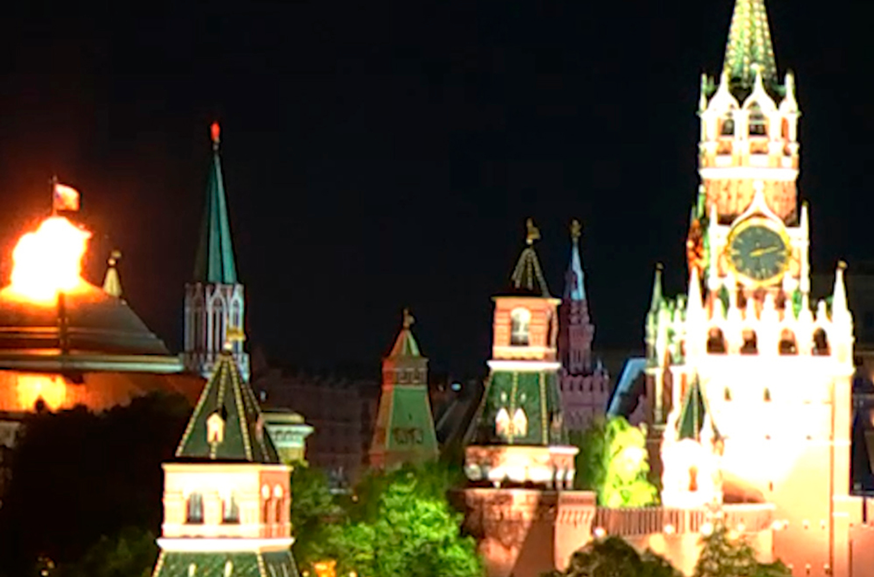 Позднее телеканал ТВЦ опубликовал новые кадры атаки, сообщив, что первый беспилотник взорвался над куполом Сенатского дворца, после чего на крыше начался пожар. Это произошло примерно в 2:27 по московскому времени. Атака второго беспилотника была зафиксирована в 2:43 ночи.