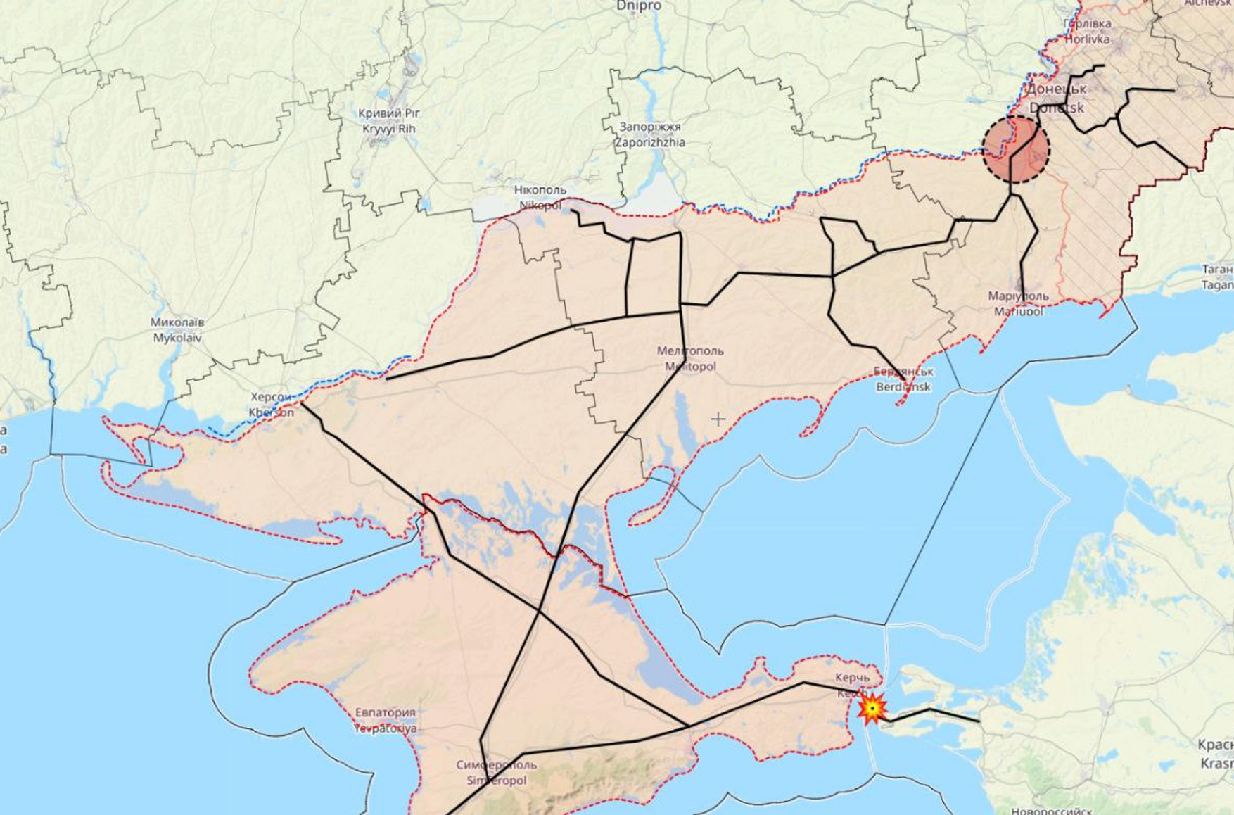 - Второй раз за время войны подорван Крымский мост — на этот раз, предположительно, морскими дронами-камикадзе;