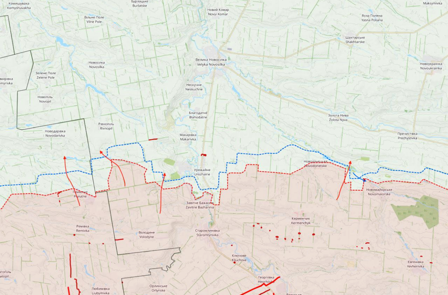 В сводке WarGonzo утверждается, что российские войска «перехватили инициативу» в районе Приютного на Времевском выступе и контратакуют к северу и северо-востоку от села.