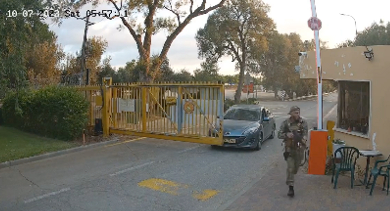 Шварц опубликовал новое видео с камеры наружного наблюдения, обнародованное организацией Southern First Responders, на котором видно, что один из террористов пытался пролезть под воротами, но у него не вышло. Видимо, после этого боевики решили дождаться, пока ворота откроет кто-нибудь из местных жителей. На обеих записях видны время и дата, указывающие, что нападение было совершено около 6 утра 7 октября, в первый день вторжения ХАМАС в южные районы Израиля.