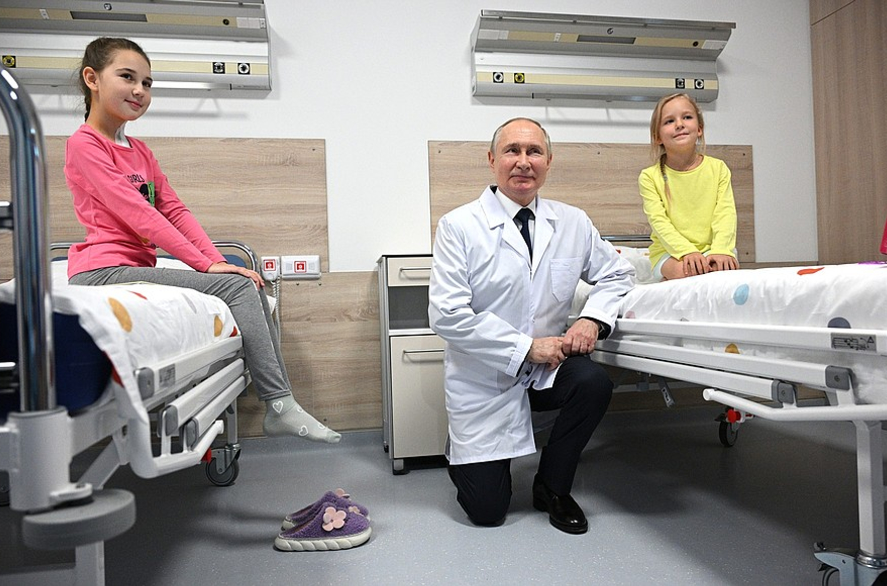 8 ноября «Россия 24» показала сюжет о том, как Путин побывал в медицинском центре детской гематологии, онкологии и иммунологии имени Димы Рогачёва. Сначала он зашел в палату к двум девочкам, которые показали ему свои рисунки, однако на задаваемые вопросы отвечали неохотно, явно смущаясь. При этом сопровождавшие Путина врачи подробно рассказывали ему о диагнозах детей и лечении, через которое они проходят. Когда Путин, попрощавшись, направился к выходу, ему напомнили о принесенных подарках. Он вручил девочкам по кукле и сфотографировался с детьми.
