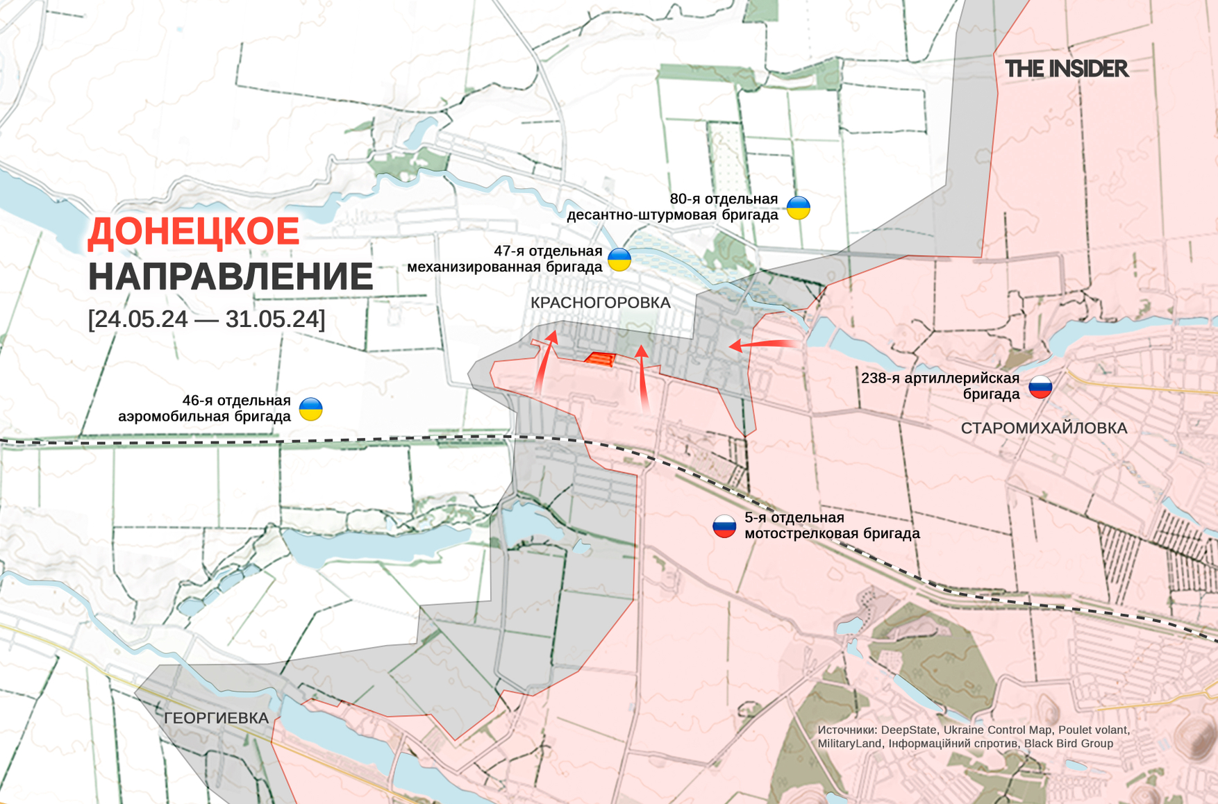 Впрочем, по информации «Рыбаря», украинские части в Красногоровке занимают оборону севернее в комплексе пятиэтажных зданий, где бои идут «за каждый дом».