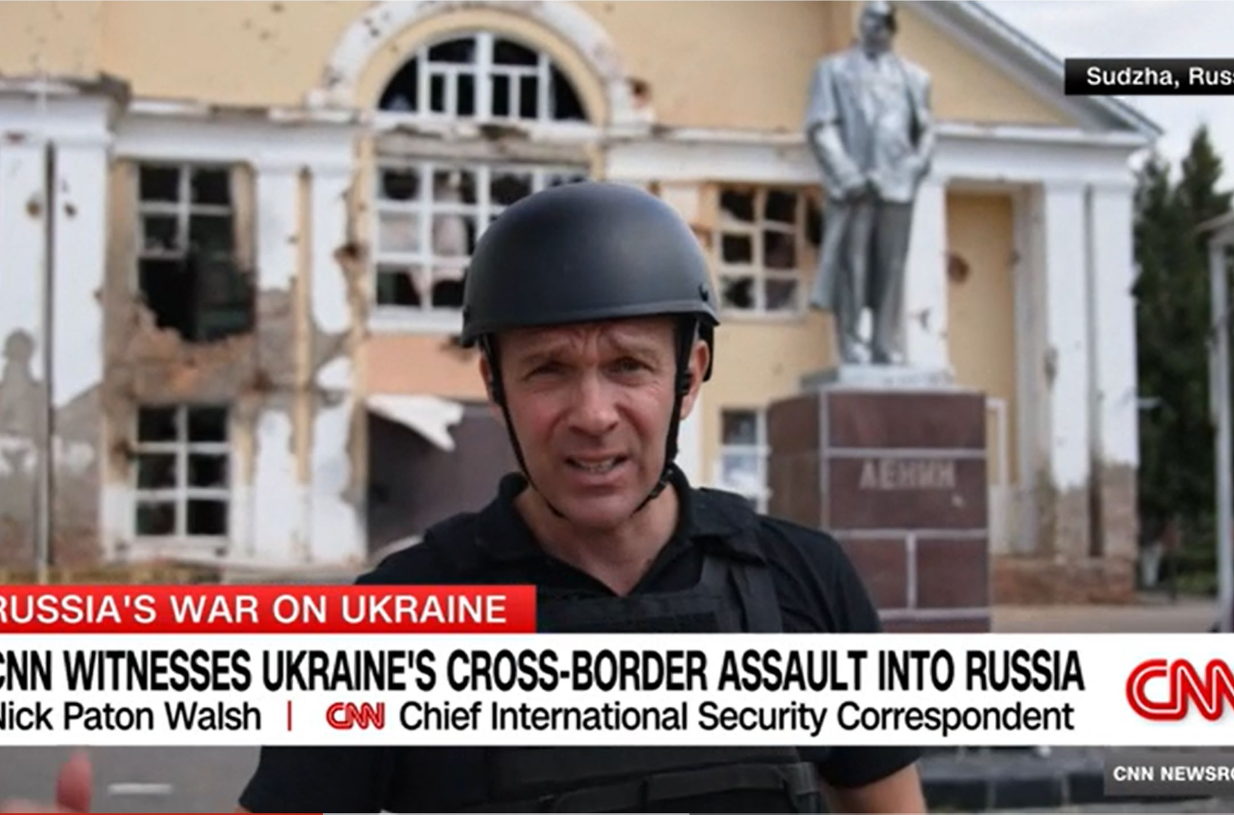 Репортаж Ника Уолша вышел 16 августа. В ролике показано, как журналисты в сопровождении военных посещают разрушенный погранпереход Суджа и сам город.