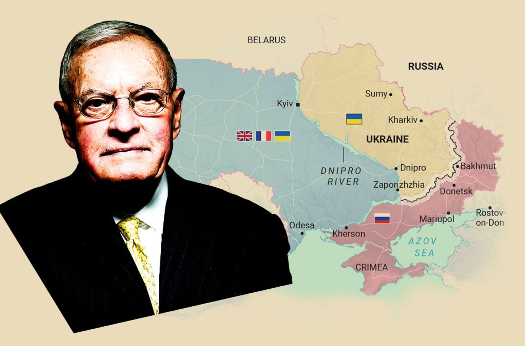 - После заключения перемирия западная часть Украины (к западу от Днепра) переходит под контроль «гарантийных сил обеспечения» — военных Британии, Франции и других стран, готовых участвовать.