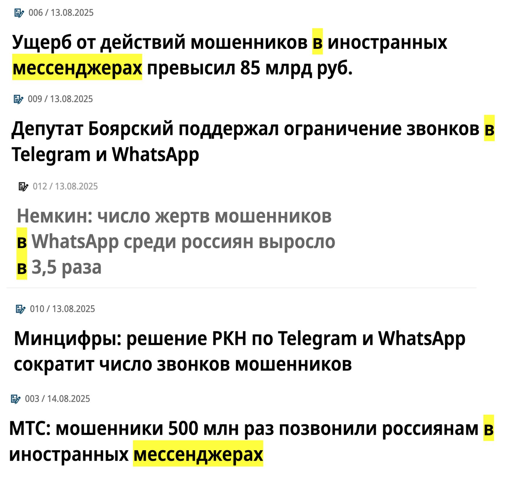 Количество публикаций в СМИ о «вредных мессенджерах» в последнее время действительно выросло. Подобные материалы публикует, например, «Коммерсантъ». Издание, в частности, публикует результаты опросов о блокировке звонков в мессенджерах по регионам, все заявления депутатов и чиновников, «статистику» МТС о том, сколько раз мошенники звонили россиянам в мессенджерах, и даже прямые заявления МТС о том, насколько компания безопаснее, чем «некоторые иностранные мессенджеры».