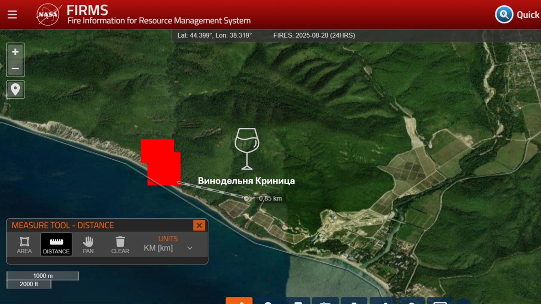 При этом, как обратил внимание The Insider, еще один очаг возгорания находится менее чем в километре от винодельни Владимира Путина «Криница». В фильме ФБК о его резиденции она упоминалась под названием «Старый Прованс» — именно для нее были закуплены позолоченные итальянские туалетные ершики. Судя по карте пожаров от NASA FIRMS, этот пожар горит всего в 850 метрах от винодельни.