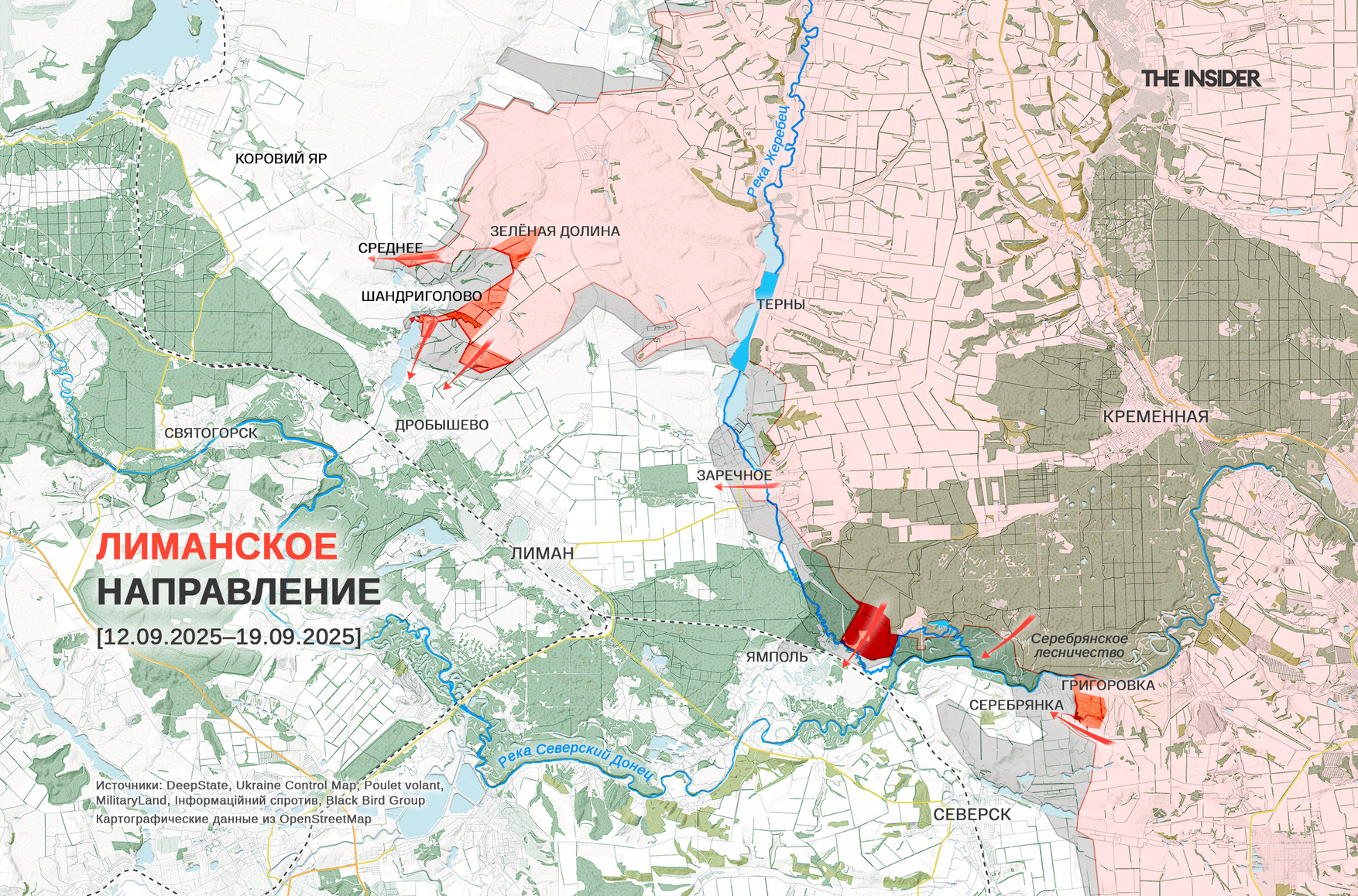 Тем временем Минобороны РФ заявило о захвате Серебрянского лесничества. Представитель ОСГВ «Днепр» ВСУ Алексей Бельский, впрочем, отрицает достоверность этой информации и утверждает, что украинские военные продолжают там обороняться.
