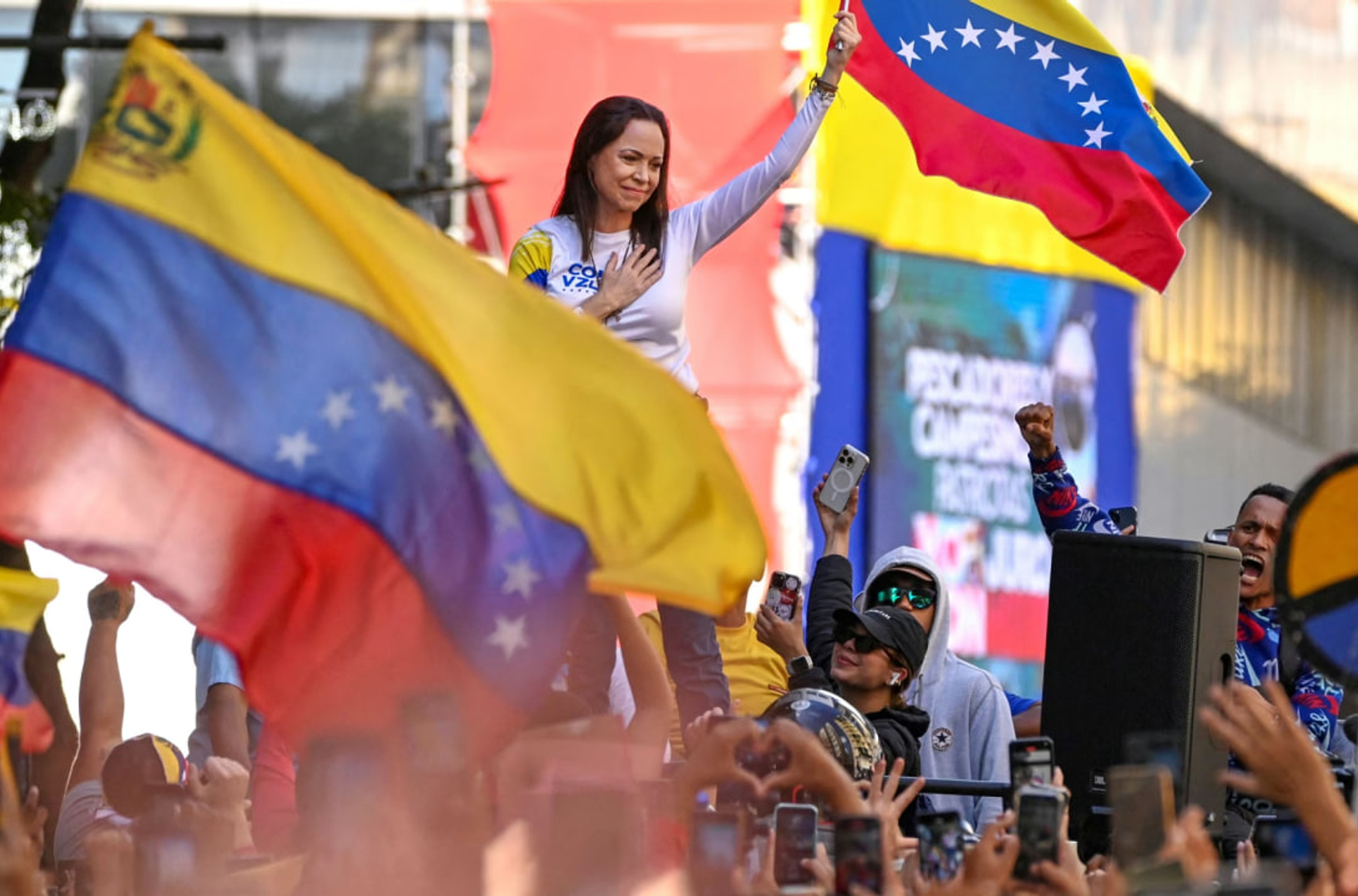 Мария Корина Мачадо — одна из лидеров венесуэльской оппозиции. В 2023 году на праймериз оппозиции она получила большинство голосов, но в итоге суд лишил ее возможности баллотироваться на пост президента. Мачадо — жесткий критик политики венесуэльского лидера Николаса Мадуро. Журнал Time называл ее «железной леди» Венесуэлы.