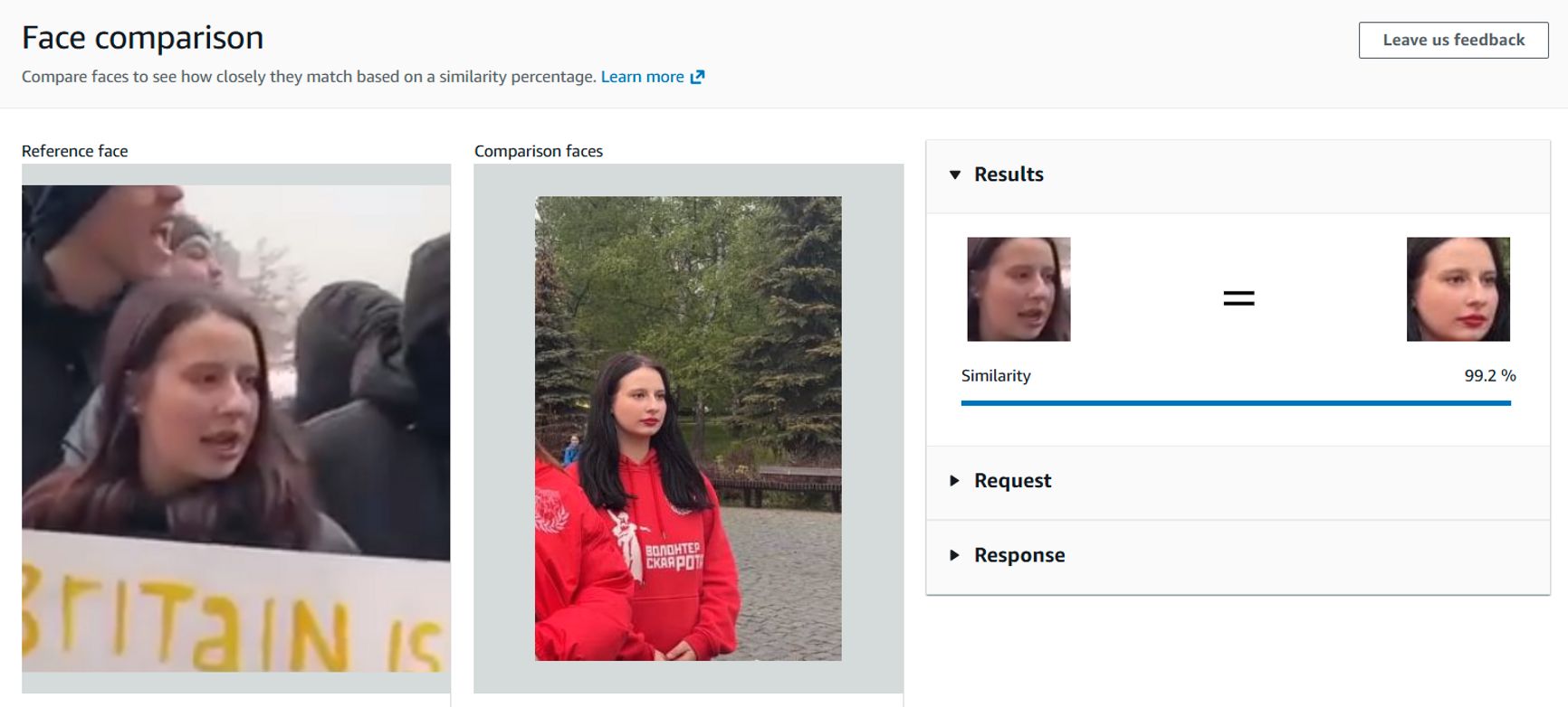 Так, в первом ряду в толпе с плакатом на английском Britain is a terrorist country — Софья Гурджиянц, активистка «Волонтёрской роты» (1, 2), молодежного гражданско-патриотического движения, созданного при поддержке общественной организации ветеранов «Боевое братство». «Волонтёрская рота» регулярно собирает гуманитарную помощь для отправки на Донбасс, проводит занятия по начальной военной подготовке для школьников и участвует в акциях в поддержку российских военных.