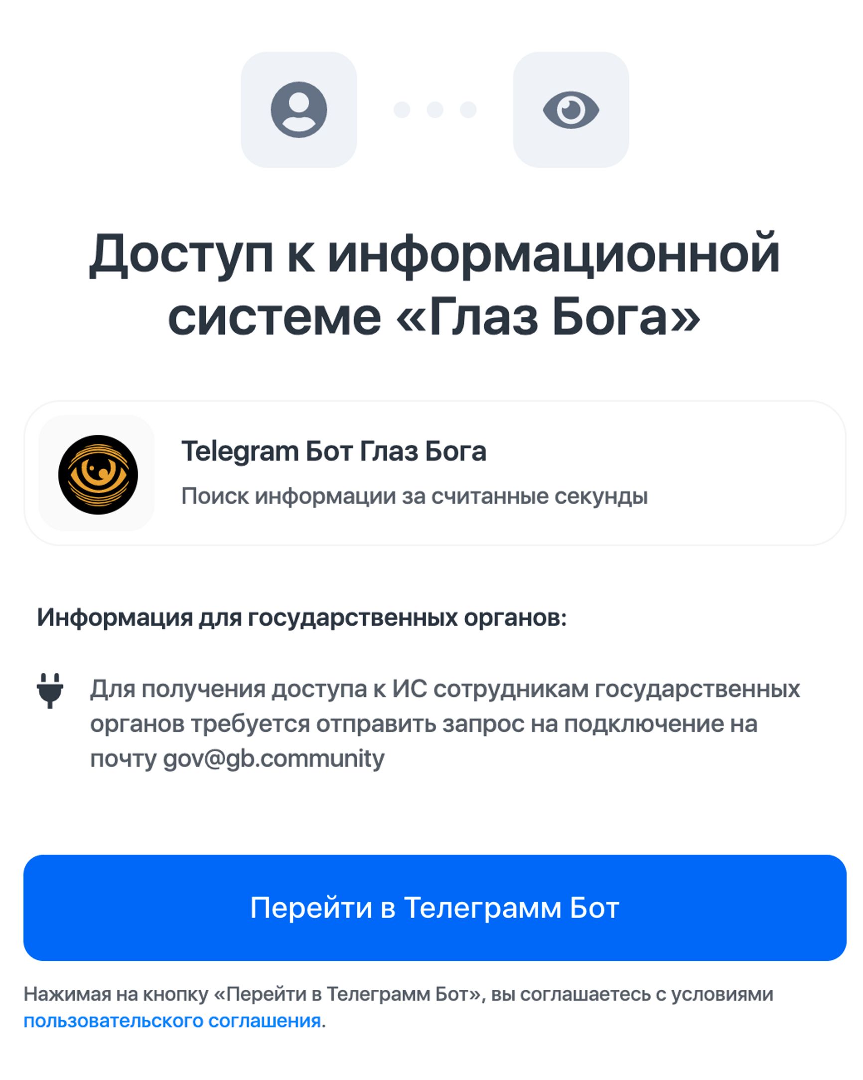 Помимо «Охотника», интерфейс и отдельный e-mail для государственных органов есть и в самом популярном в России сервисе «Глаз бога».