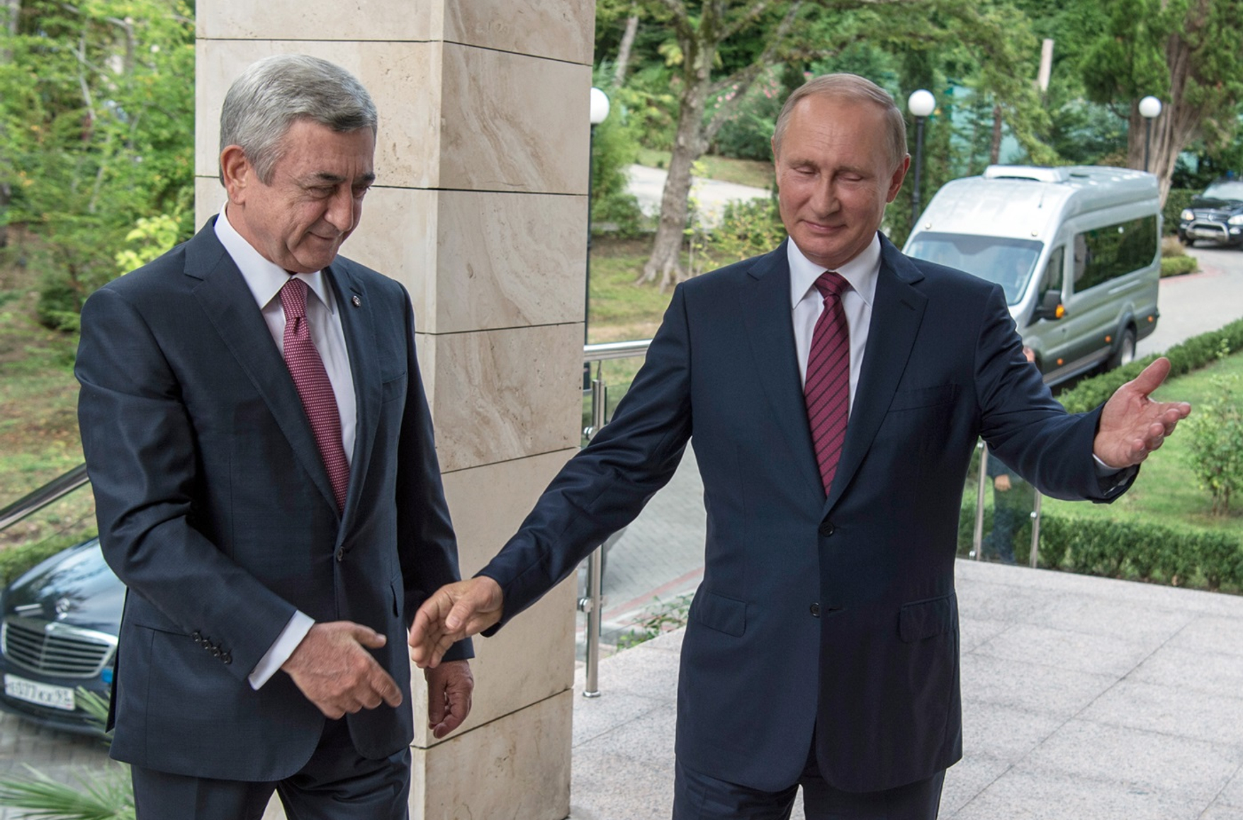 10. Общественный статус Сержа Саргсяна в Армении как одного из ключевых организаторов победы страны в Карабахской войне может быть сопоставлен с общественным статусом Владимира Путина, которого российские СМИ представляют в качестве главного организатора побед во второй чеченской, российско-грузинской, российско-украинской, сирийской войнах.